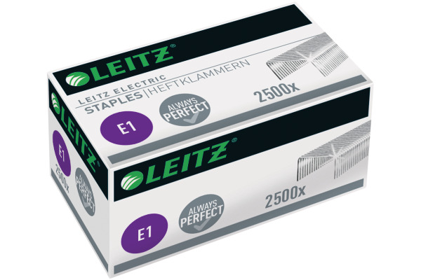 ELECTRIC - HeftklammernExtra harter Stahl. Für eine optimale Heftleistung mit dem Leitz elektrischen Heftgerät.Zum Heften von bis zu 10 Blatt (80 g/m² Papier)Jede Schachtel enthält 2.500 HeftklammernPremiumqualität, empfohlen für Leitz Elektrische Heftgeräte 5532 und 55663 Jahre Garantie nur bei Verwendung von Leitz Heftklammern, GS geprüft4 mm SchenkellängeBis zu 10 Jahre Garantie auf Leitz Heftgeräte bei Verwendung von Leitz Heftklammern