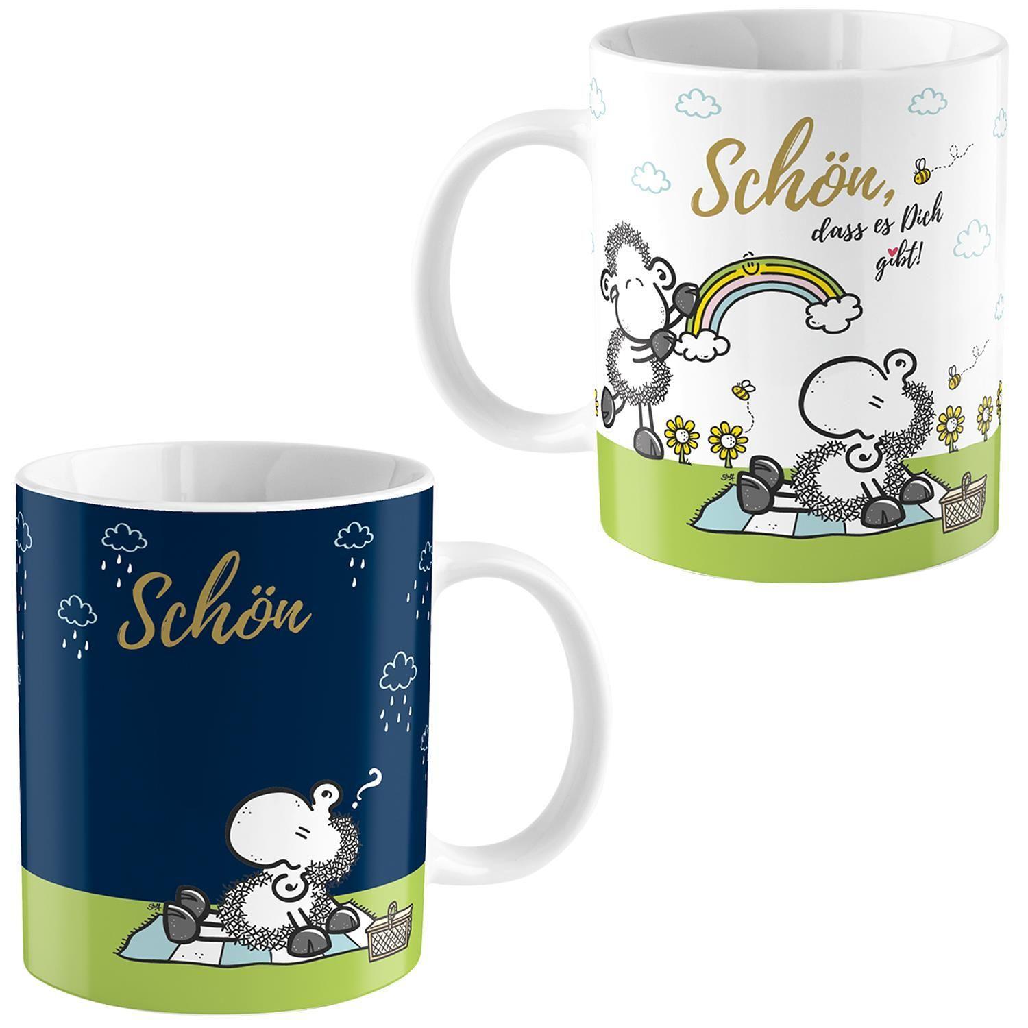 Zaubertasse aus Porzellan, Tasse wechselt beim Einfüllen eines warmen Getränks die Farbe von Dunkelblau zu Weiß. Sheepworld Tasse mit Spruch 'Schön, dass es dich gibt', 35 cl Fassungsvermögen, Tasse nicht spülmaschinengeeignet. Sheepworld Zaubertasse mit Wechselmotiv in dekorativer Geschenk-Box aus Pappe. Die schöne Sheepworld Porzellantasse ist etwas ganz Besonderes. Bis ins Detail liebevoll gestaltet ist die Kaffeetasse mit einem dekorativen Motiv bedruckt, das beim Einfüllen eines heißen Getränks die Farbe wechselt und ihr ganzes Motiv freigibt. 'Schön, dass es dich gibt' lautet die Botschaft, die allen Menschen ein Lächeln auf die Lippen zaubert. Somit ist diese Tasse auch ein passendes Geschenk, zum Beispiel zum Valentinstag, zum Geburtstag, zu Weihnachten oder zu einer anderen Gelegenheit, bei der man einem lieben Menschen eine kleine Freude machen möchte. Mit 35 cl Fassungsvermögen hat die Tasse zudem eine ideale Kaffeetassen-Größe. Aber natürlich schmecken auch Tee, eine heiße Schokolade oder andere Getränke aus diesem dekorativen Behältnis.