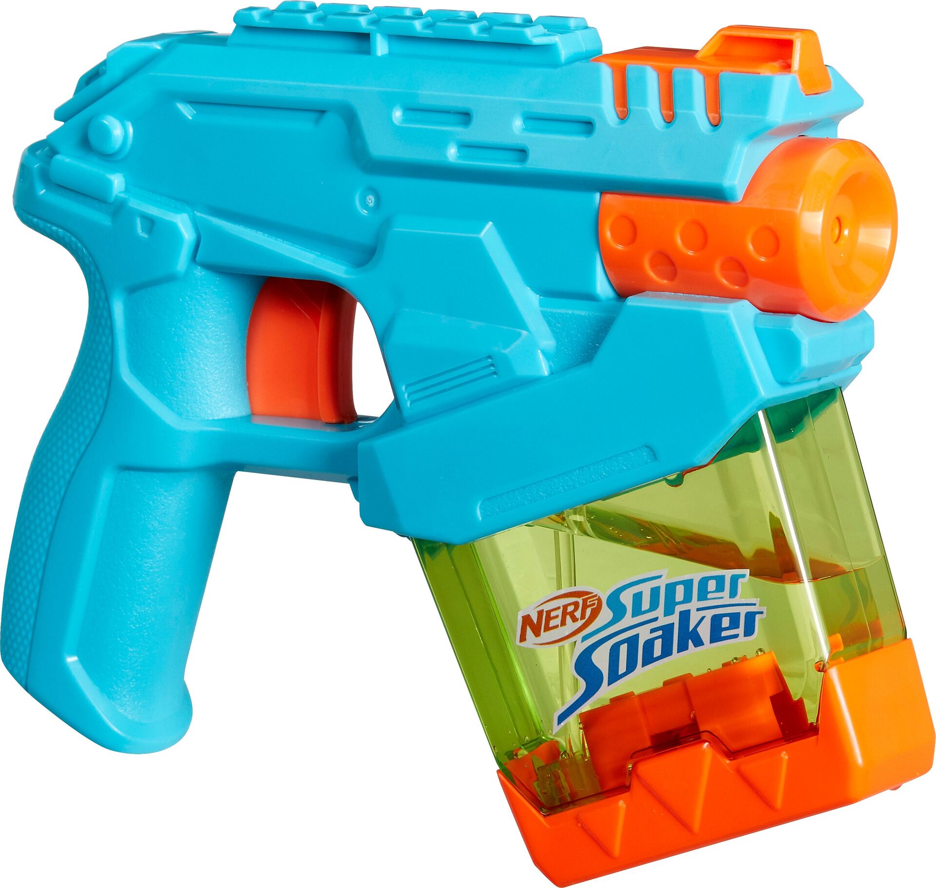 Der Nerf Super Soaker Mini Dunk-Fill Wasserblaster bietet einen einfach zu befüllenden Tank, damit man im Handumdrehen ins Spritzerlebnis eintauchen kann. Durch das innovative Design lassen sich die Tanks superschnell befüllen. Er wird einfach in Wasser getaucht und man kann sogar zusehen, wie schnell er sich füllt. Der durchsichtige Tank verfügt über eine Kapazität von bis zu 100 ml. Wird der Tank in Wasser getaucht, sind die Kinder sofort für spritzige Wasserspiele im Freien bereit. Durch Drücken auf den Abzug wird das Wasser abgefeuert. Nerf Super Soaker Blaster eignen sich prima als Outdoor-Wasserspielzeuge für Kinder und sind tolle Geschenke, um alle zum aktiven Spielen nach draußen zu bringen und echte Splash-Action zu erleben! NERF SUPER SOAKER und HASBRO sowie alle dazugehörigen Marken und Logos sind Marken von Hasbro, Inc.